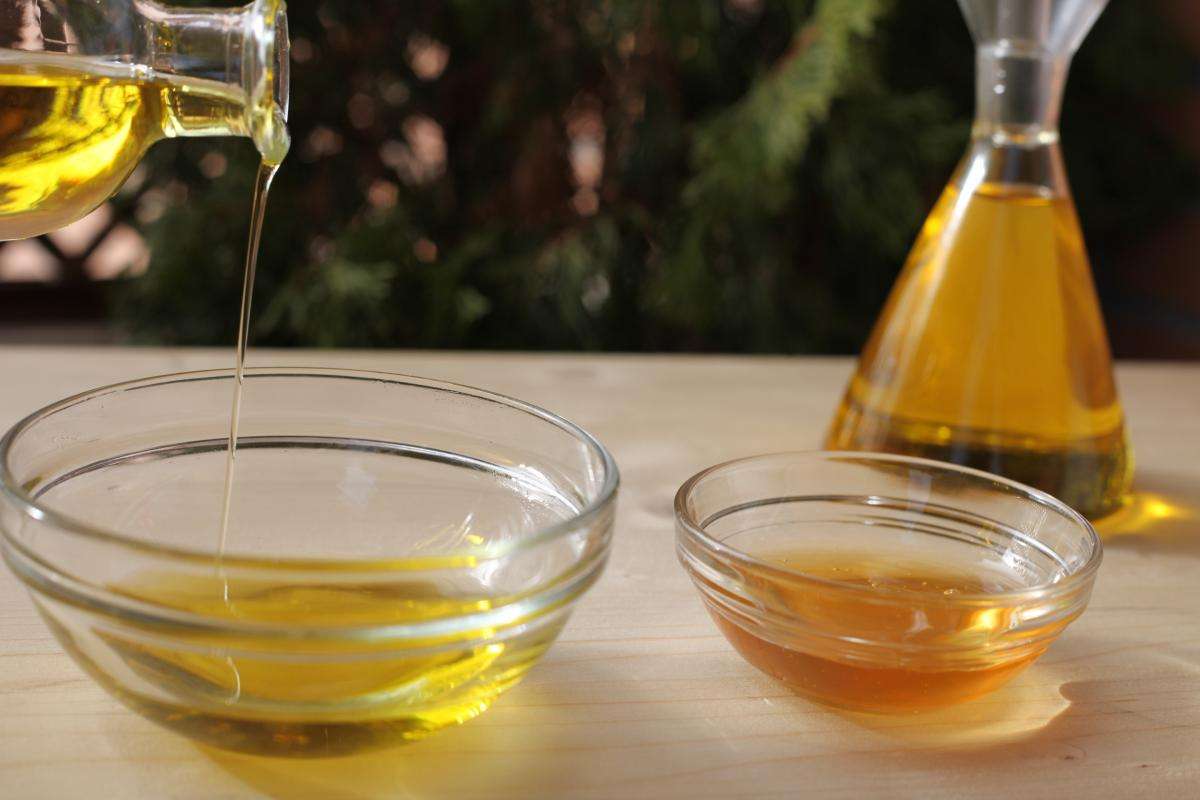 Mélangez 5 cuillérées à soupe d’huile d’olive vierge extra et 1 cuillérée à soupe de miel